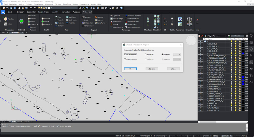 Mit CAD2GIS erhalten Sie somit einen klassischen CAD-Plan, den Sie verlustfrei in das SHP-Format exportieren können