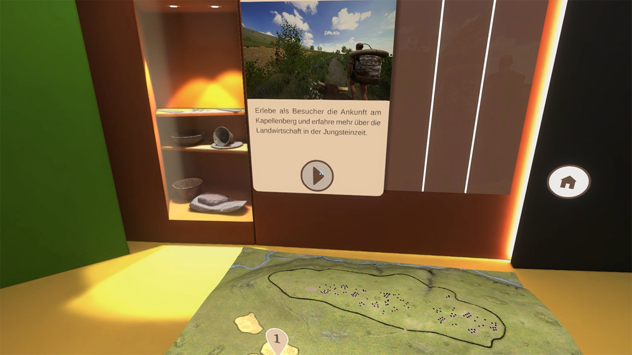 Two specially developed virtual reality applications were created for the Hofheim am Taunus City Museum, giving visitors an immersive insight into Neolithic life on Kapellenberg. Both VR experiences take different approaches – from a narrative-led experience to interactive stations with modern hand tracking.